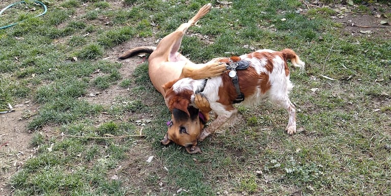 J'ai adopté mon chien, en 2019. Il avait de bons problèmes de comportement et m'a poussé à me questionner et me former...inévitablement.